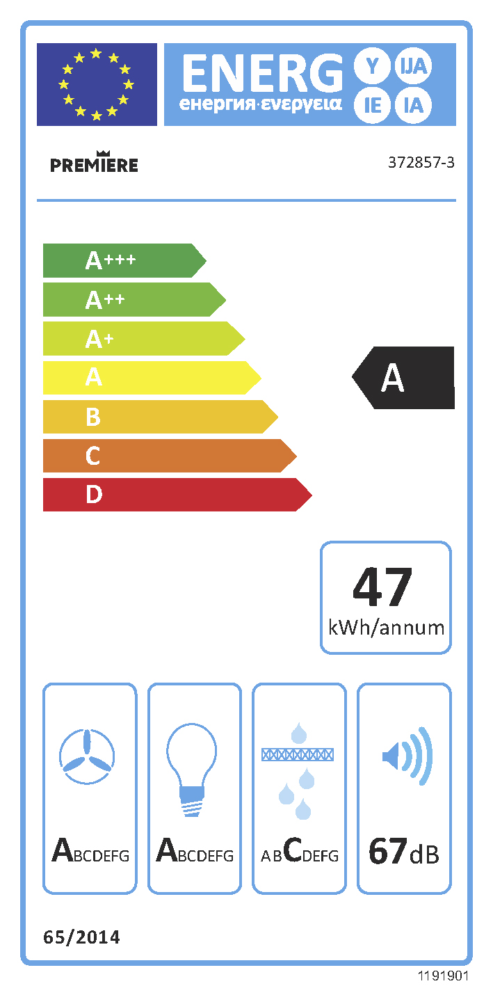 Energieeffizienzklassen und Spektren: Backöfen, Herde und Dunstabzüge A+++ - D. Geschirrspüler und Kühl-/Gefrierschränke A - G und Leuchtmittel A++ - E.
